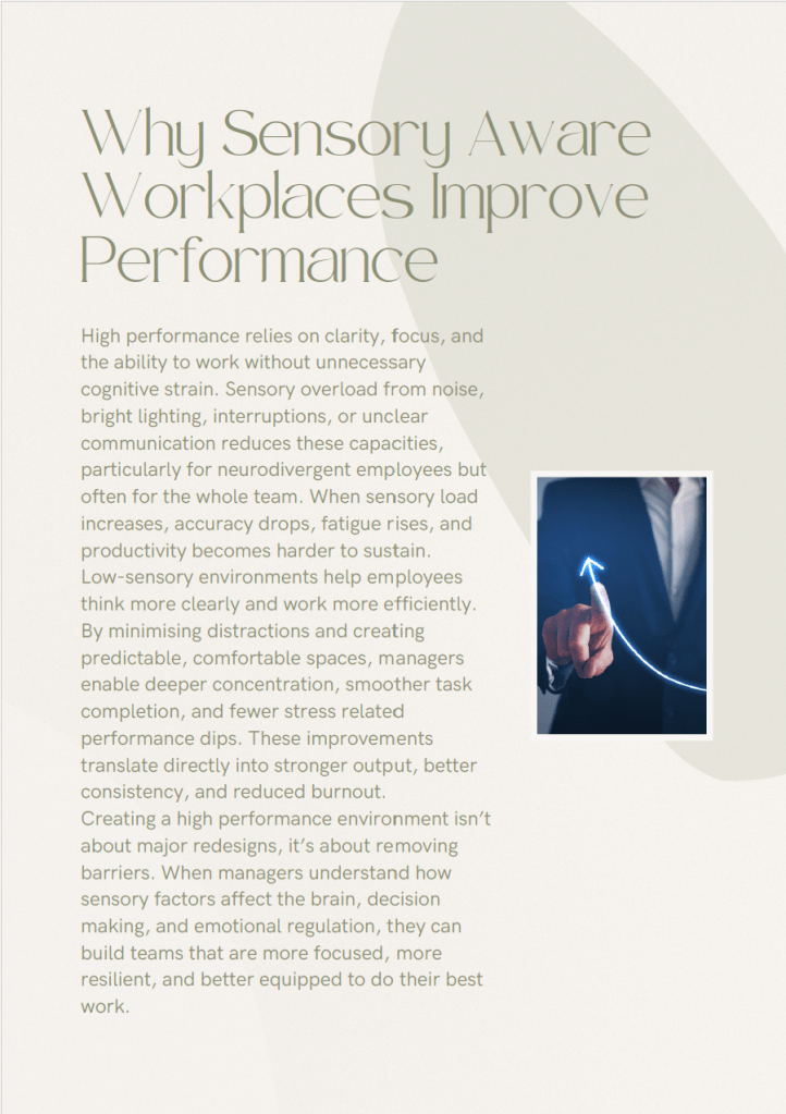 A significant number of employees experience sensory sensitivities, even if they have never disclosed a diagnosis. For neurodivergent staff, everyday workplace factors—noise, lighting, interruptions, communication styles—can create unnecessary stress that impacts wellbeing and performance.