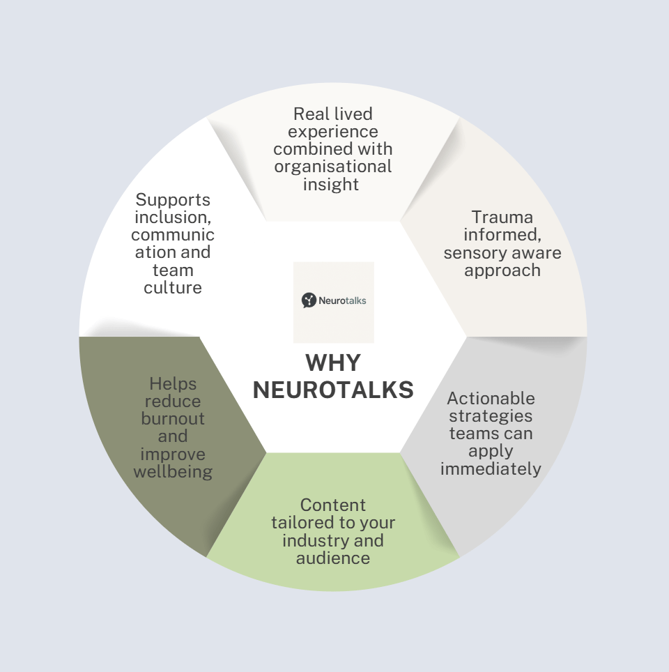Practical, lived experience training that helps teams understand neurodivergence, reduce overwhelm and build inclusive, high performance environments.